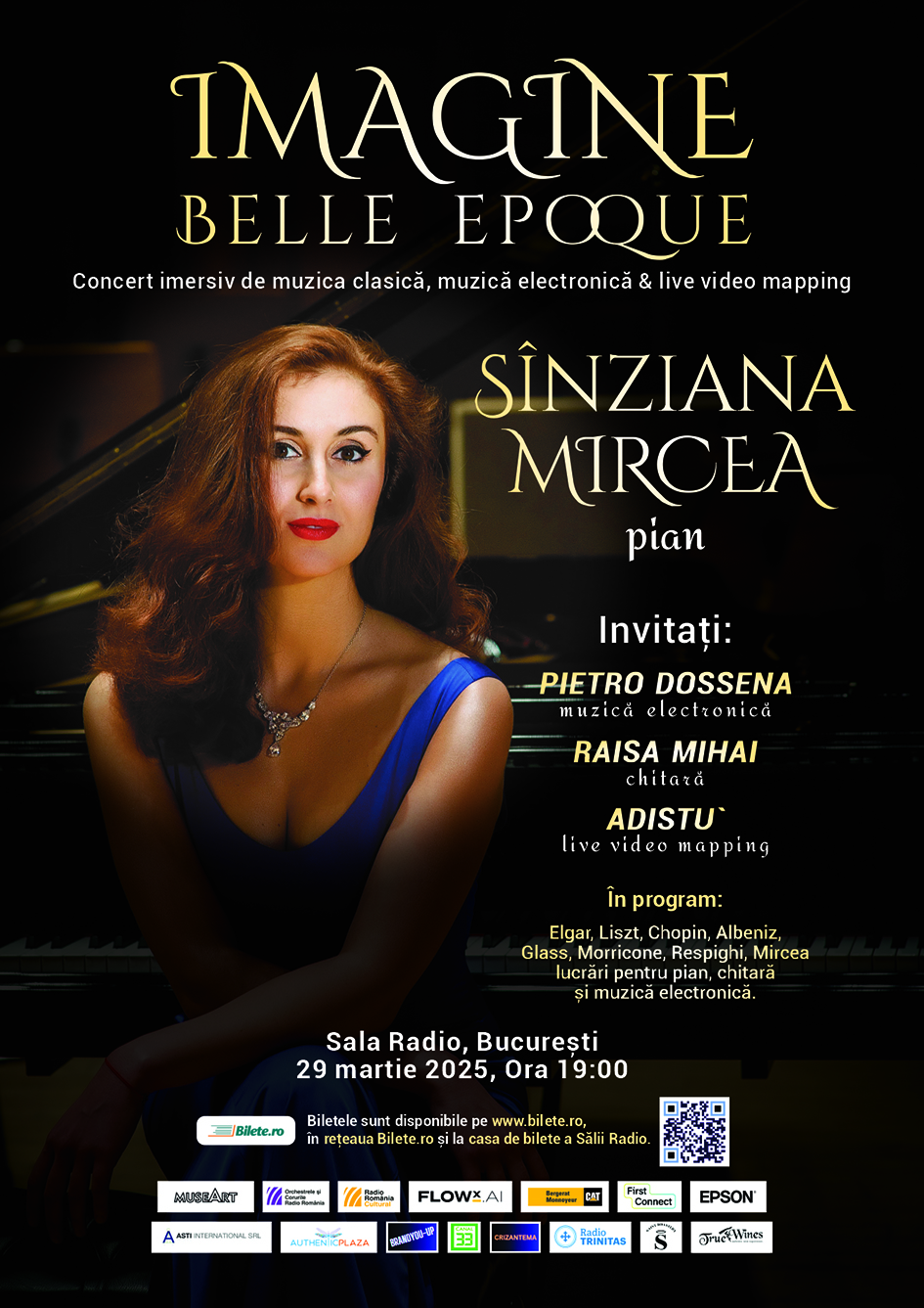 Pianista Sînziana Mircea, recunoscută la nivel internațional atât pentru virtuozitatea sa, cât și pentru abordarea inovativă a muzicii clasice, revine pe scena Sălii Radio din București sâmbătă, 29 martie 2025, cu un concert imersiv de muzică clasică, muzică electronică și live video mapping. Concertul este sold-out, dar va fi transmis în direct la Radio România Cultural, la radio și streaming online, începând cu ora 19:00.